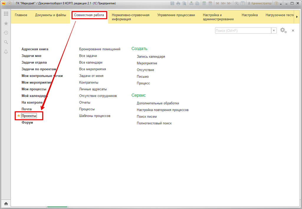 Наличие подсистемы управления проектами – вот одно из отличий версии КОРП в программе «1С:Документоооборот» от версии ПРОФ.