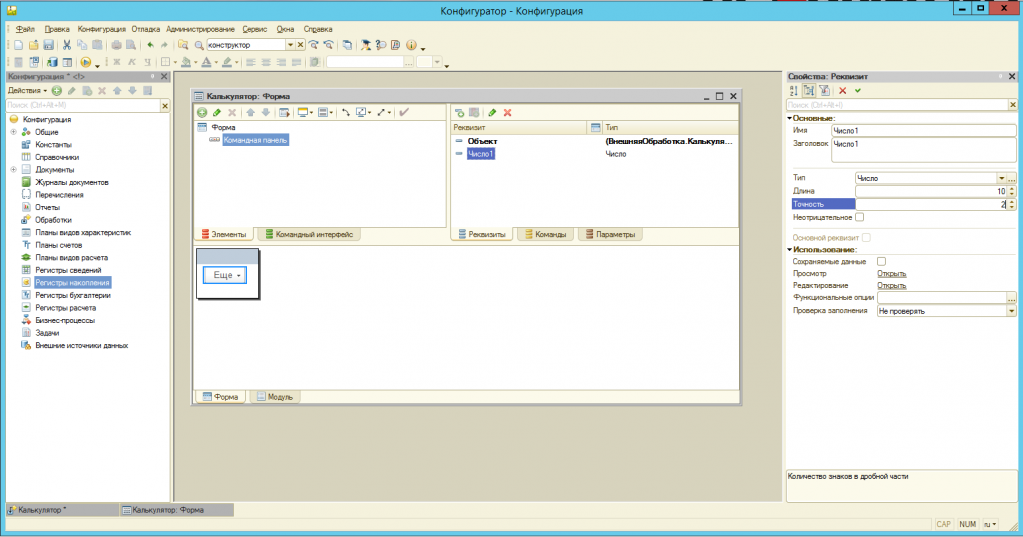 Уроки программирования 1С: примитивный тип данных «Число», или как разработать калькулятор в среде «1С:Предприятие 8»