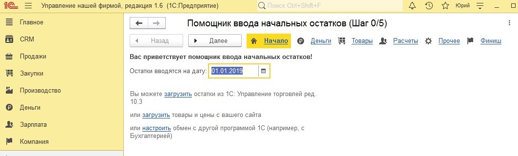 Ввод начальных остатков в 1С:УНФ: пошаговая инструкция