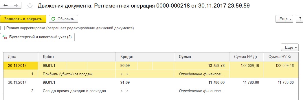 Осуществление указанной операции сопровождается сопоставлением кредитовых и дебетовых оборотов по счетам 91 и 90. А также формированием финансовых итогов по счетам 91 и 90.