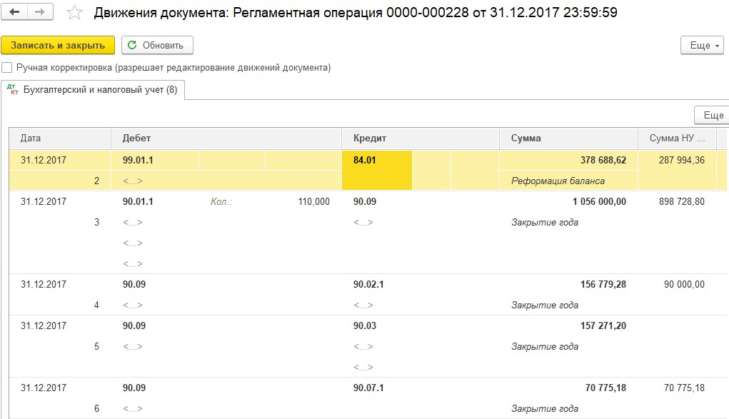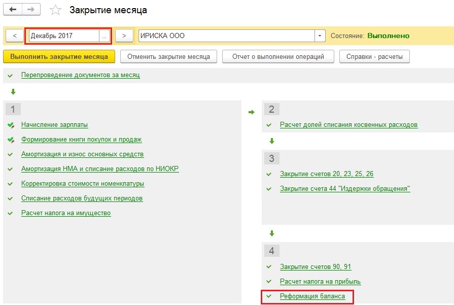 При закрытии декабря, программа предлагает еще одну операцию - реформацию баланса.